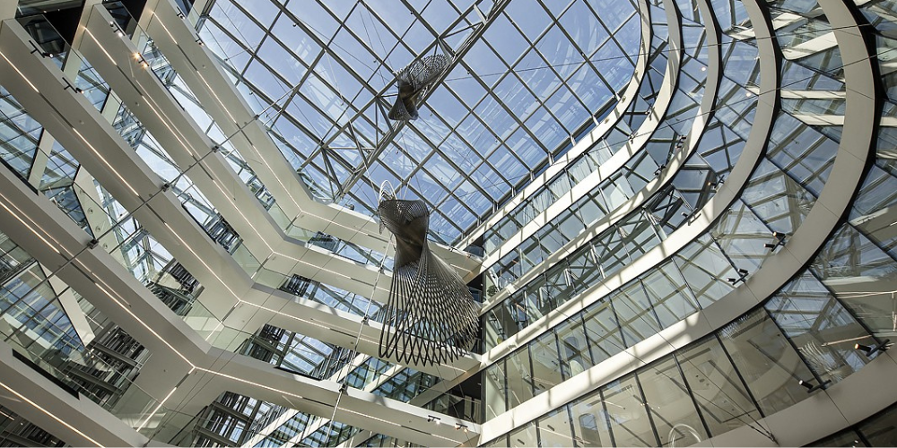 V atriu návštěvníky čeká impozantní vodopád obklopený zelení. Uprostřed atria je zavěšená velká originální umělecká instalace. Galerie pak nabízí každý měsíc zdarma výstavy současného výtvarného umění. Aktuálně tu probíhá výstava Doteky s Bohem od Terezy Loudové, kde se autorka soustředí na duchovní témata. „Tato výstava je pro mě cestou k prozkoumání duchovního rozměru života, kde se dotýkám témat víry, transcendence a vnitřního klidu skrze jemné barevné nuance a symbolické prvky, které zvou diváka k vlastní reflexi,“ říká umělkyně Tereza Loudová.