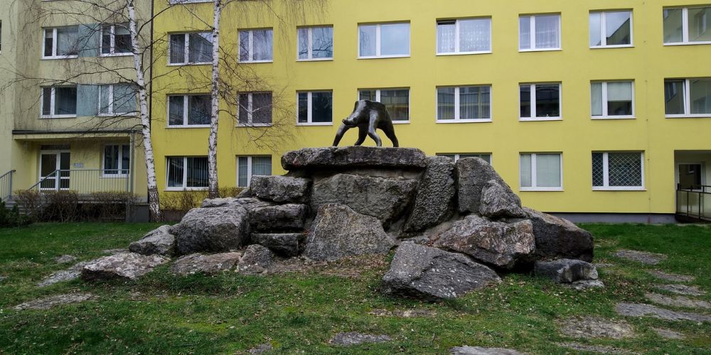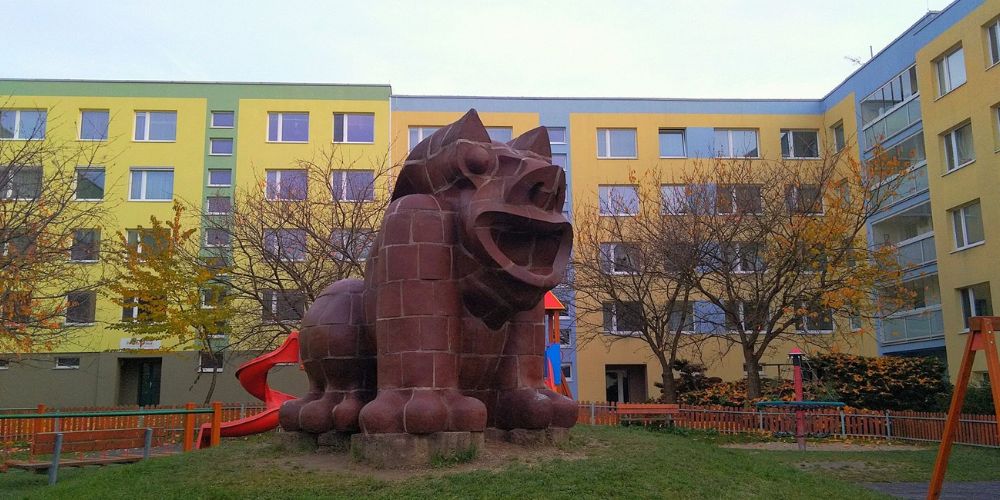 Výrazným a zároveň hravým prvkem veřejného prostoru je Plastika Prase na procházce od sochaře Čestmíra Sušky z roku 1990. Bronzová plastika umístěná na kamenném podkladu působí odlehčeně a s nadsázkou. Suška, známý svou prací s industriálními materiály i figurální stylizací, zde vytvořil dílo, které oslovuje širokou veřejnost – zejména svou srozumitelností a jemným humorem. Plastika přirozeně oživuje okolní prostor a stává se výrazným orientačním bodem.
